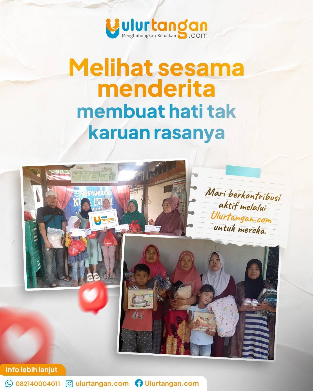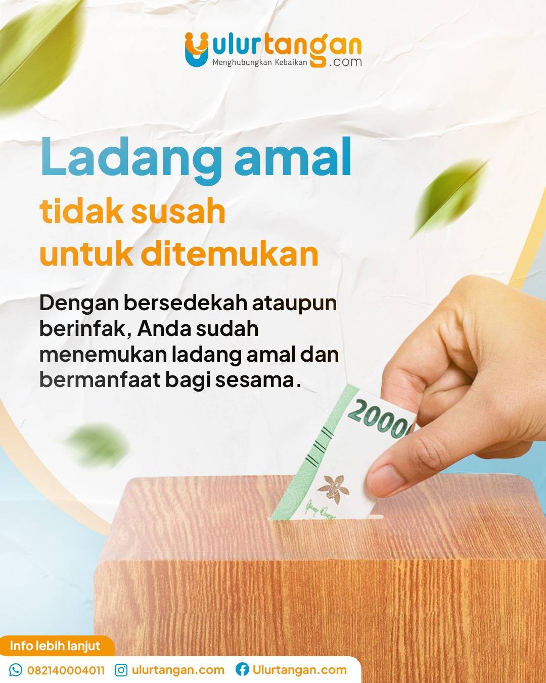 Ulurtangan.com adalah lembaga independen yang hadir sebagai jembatan kebaikan untuk umat. Kami memfasilitasi penyaluran infak, sedekah, zakat, wakaf, dan amal jariyah agar tepat sasaran, bermanfaat luas, serta menjadi wasilah kebaikan yang terus mengalir.