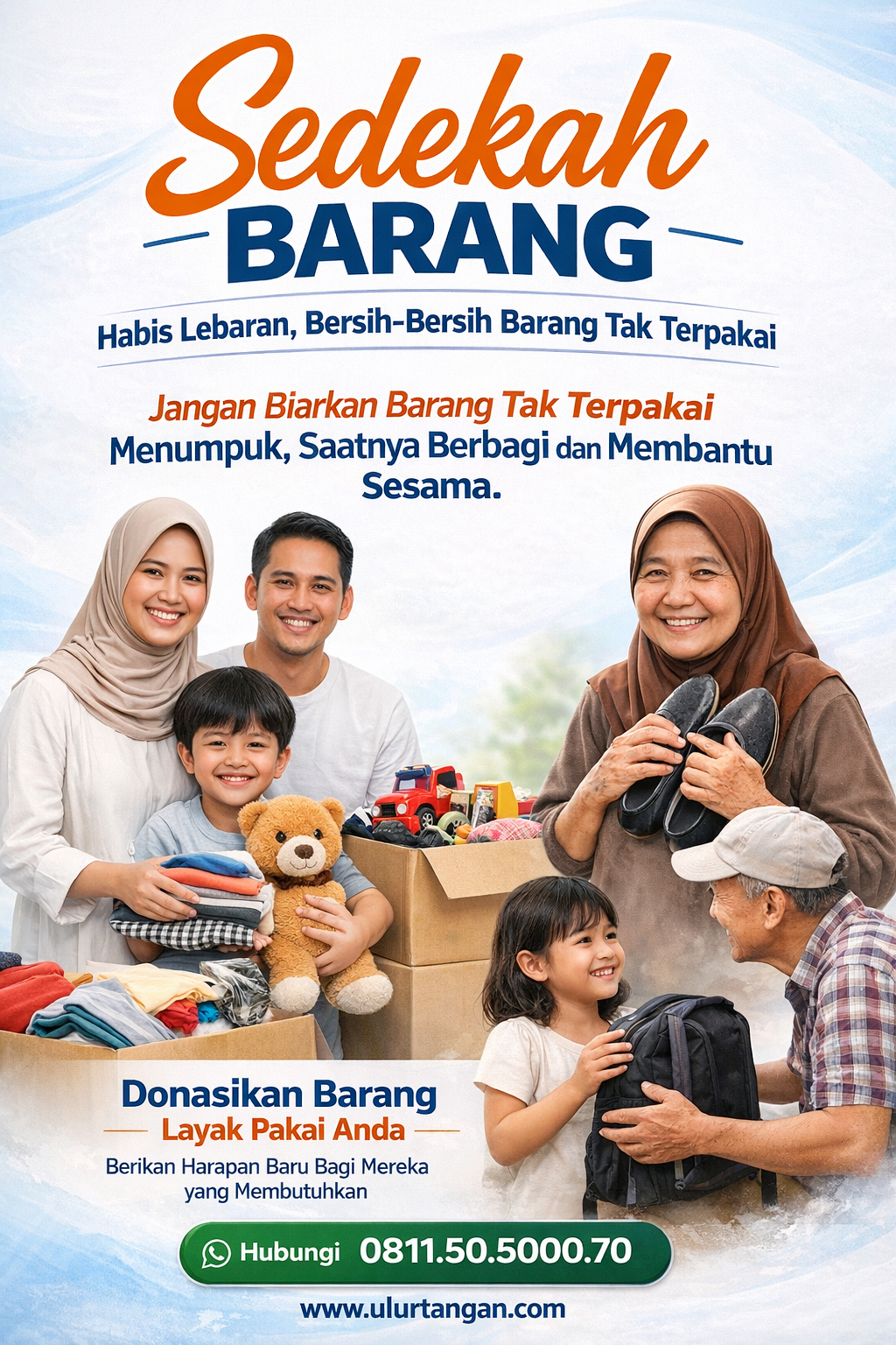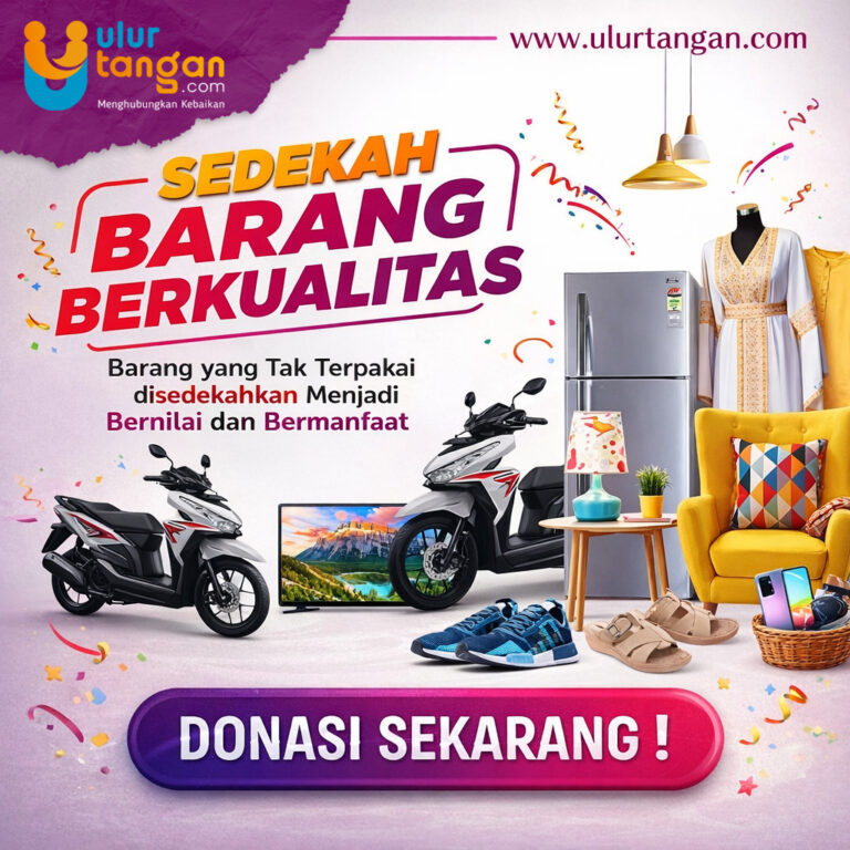 Barang yang tak terpakai bisa jadi kebahagiaan bagi yang membutuhkan. Donasikan pakaian, alat rumah tangga, atau perlengkapan layak pakai — jadikan harta Anda tetap hidup dalam kebaikan.