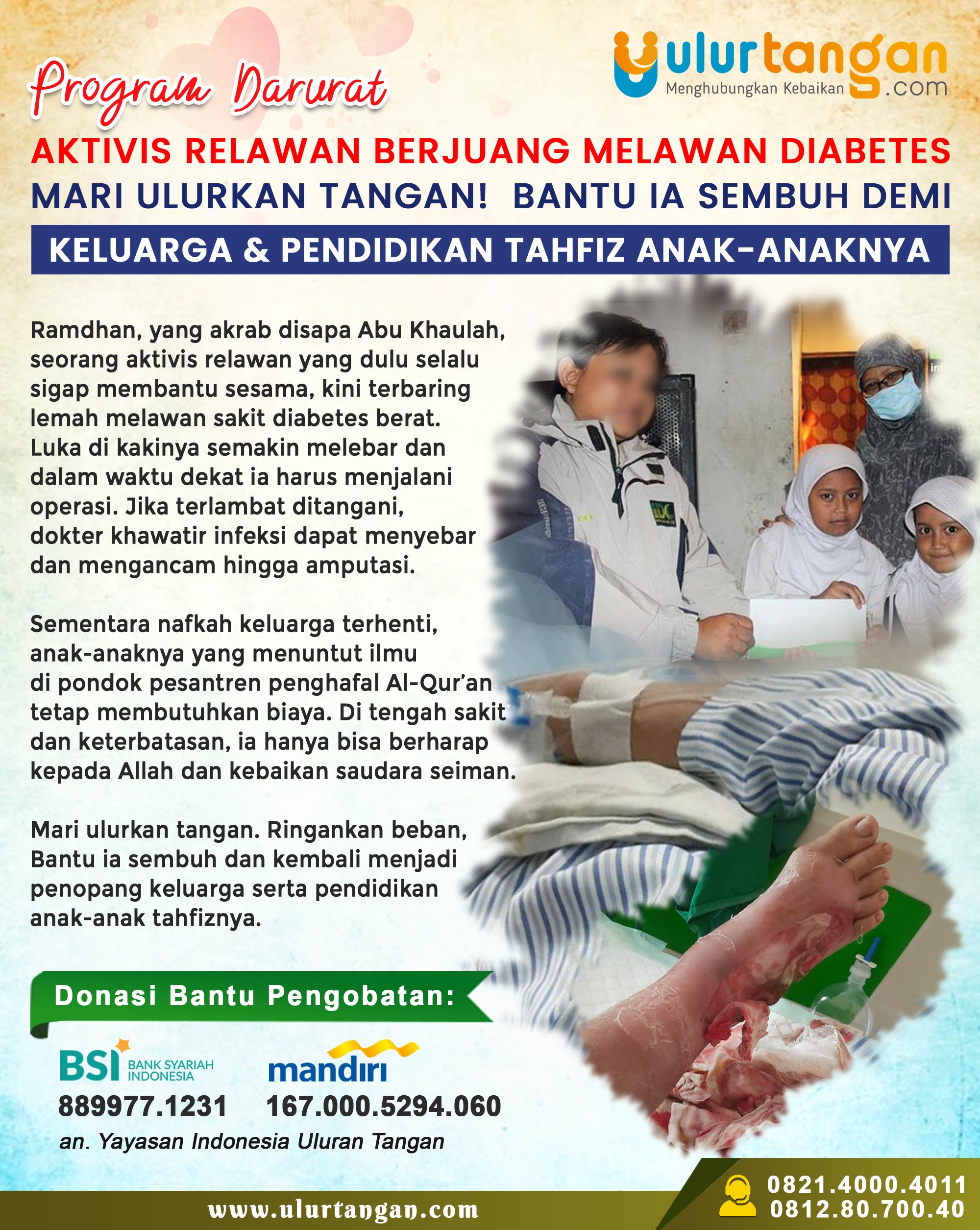 Aktivis Relawan Berjuang Melawan Diabetes Berat. Mari Ulurkan Tangan! Bantu Ia Sembuh dan Kembali Menjadi Penopang Keluarga & Pendidikan Tahfiz Anak-anaknya