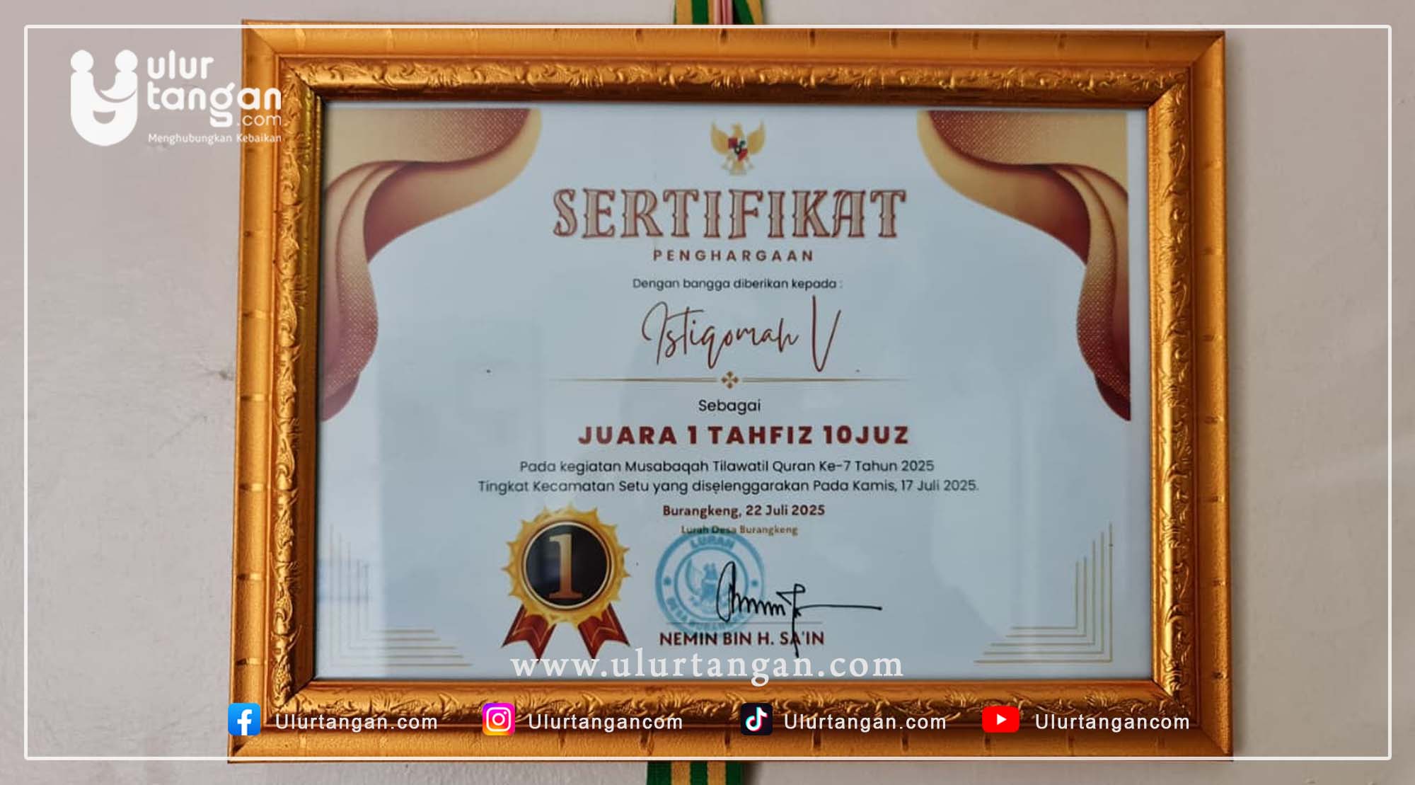 ISTI adalah seorang santriwati penghafal Al-Qur’an. Hingga hari ini, ia telah menghafal 10 juz Al-Qur’an dan beberapa kali menorehkan prestasi dalam lomba tahfidz. Piagam dan piala yang tersusun rapi di rumah sederhana mereka menjadi saksi atas ketekunan dan kesungguhannya menjaga Kalamullah.
