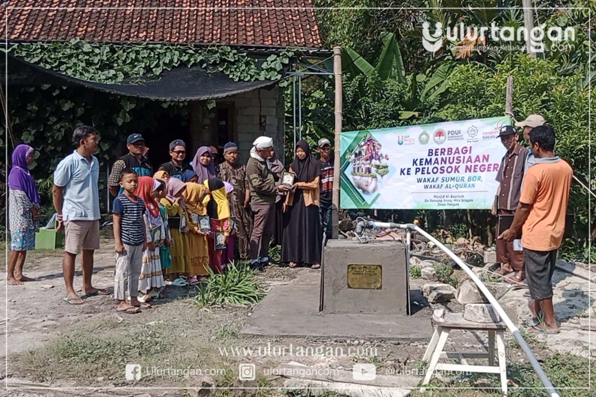 “Pada Jumat yang penuh berkah ini, saya mewakili PDUI Komisariat Kota Bekasi, Yayasan Ulurtangan, dan komunitas para donatur menyerahkan wakaf sumur dalam Masjid Al-Bayyinah kepada Ustadz Jaka untuk dikelola dan dimanfaatkan bagi kebutuhan masjid serta warga sekitar,” ujar dr. Rudolf di hadapan warga Gunung Sono.